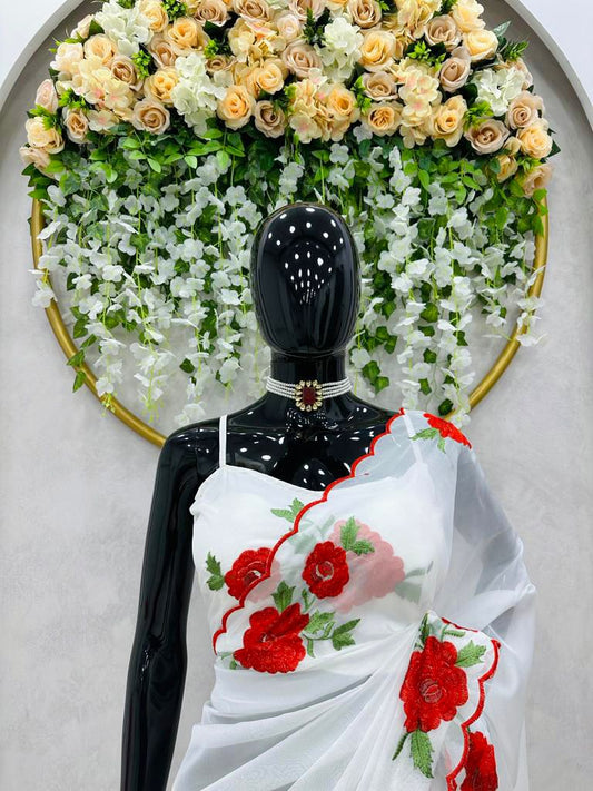 Soft Silk Embroidery Flower Design Ready To Wear Saree