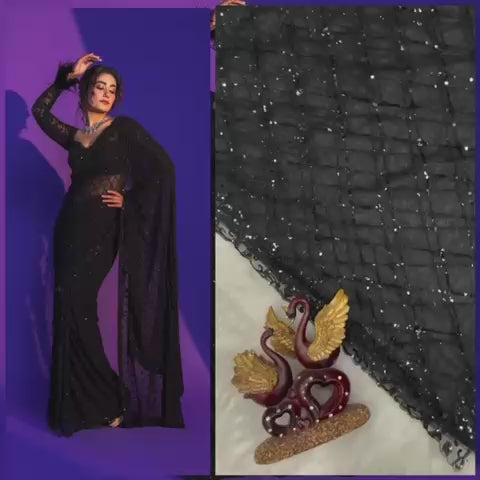 Party Wear Black Colour Georgette Sequence Worked Designer Saree With Beautiful Sequenc Blouse