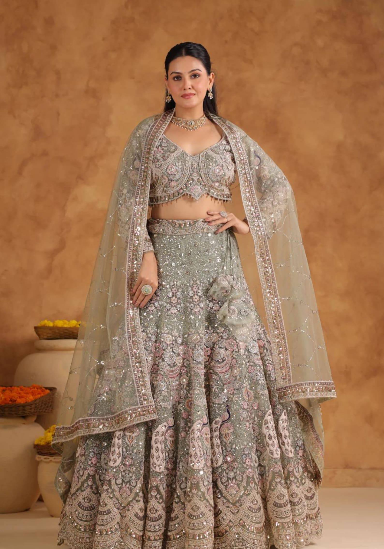 Elegant Butterfly Net Sequins Bridal Style Lehenga Coli