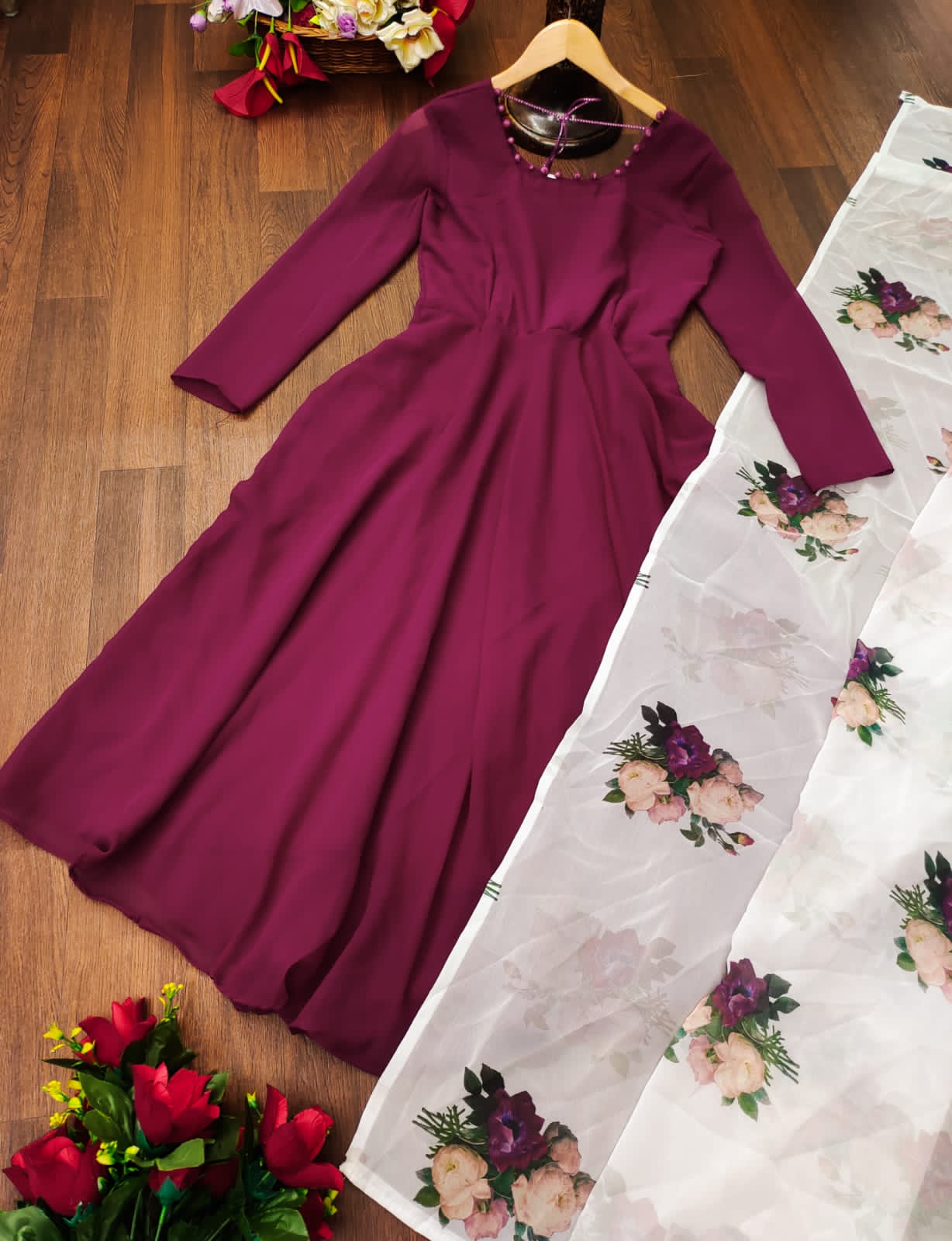 New Fashioneble Georgette Kurti With Beautiful White Colour Printed Duppata