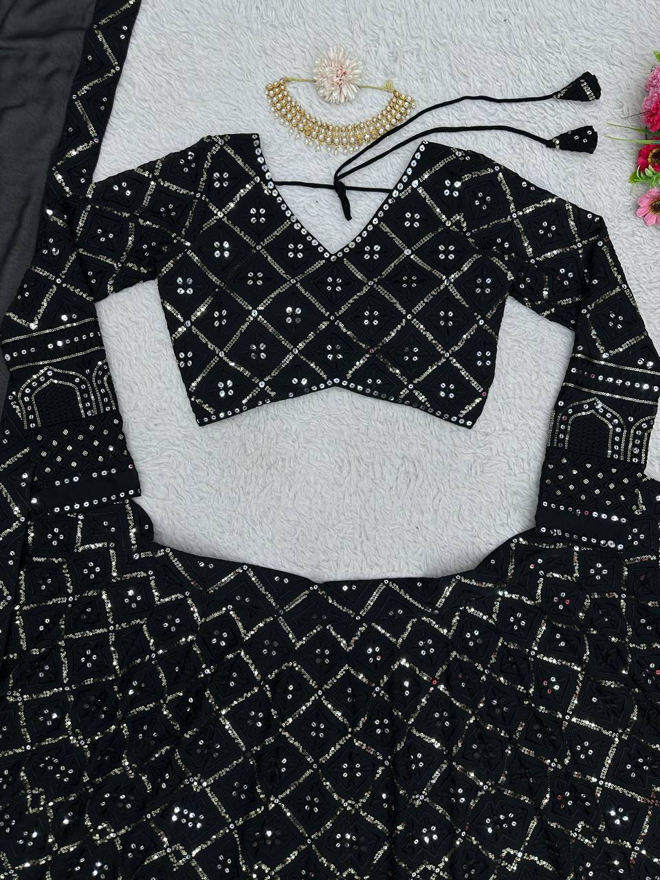 Heavy Wedding Wear Georgette Sequence Worked Lehenga With Beautiful Duppata And Cancan